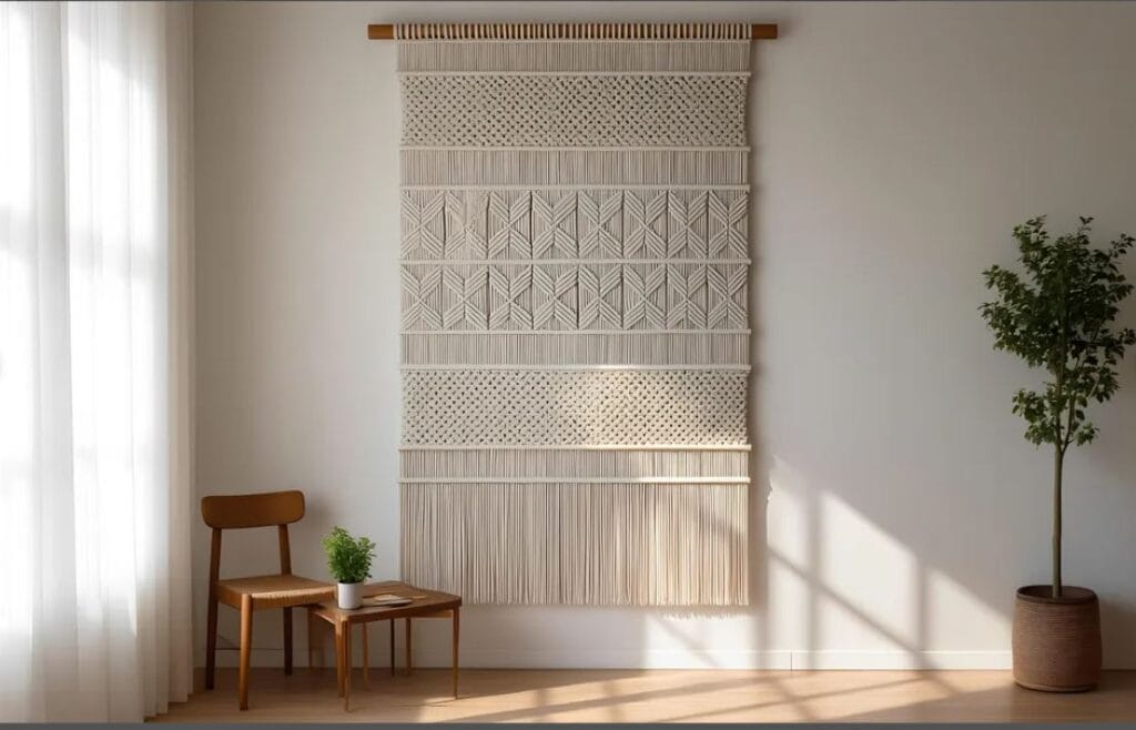 Fiber Artworks and Architectural Design Elements using only 100% natural materials. Combining skills from Macrame wall hangings, Rope Art, Carpentry and Ironmongery to create beautiful spaces