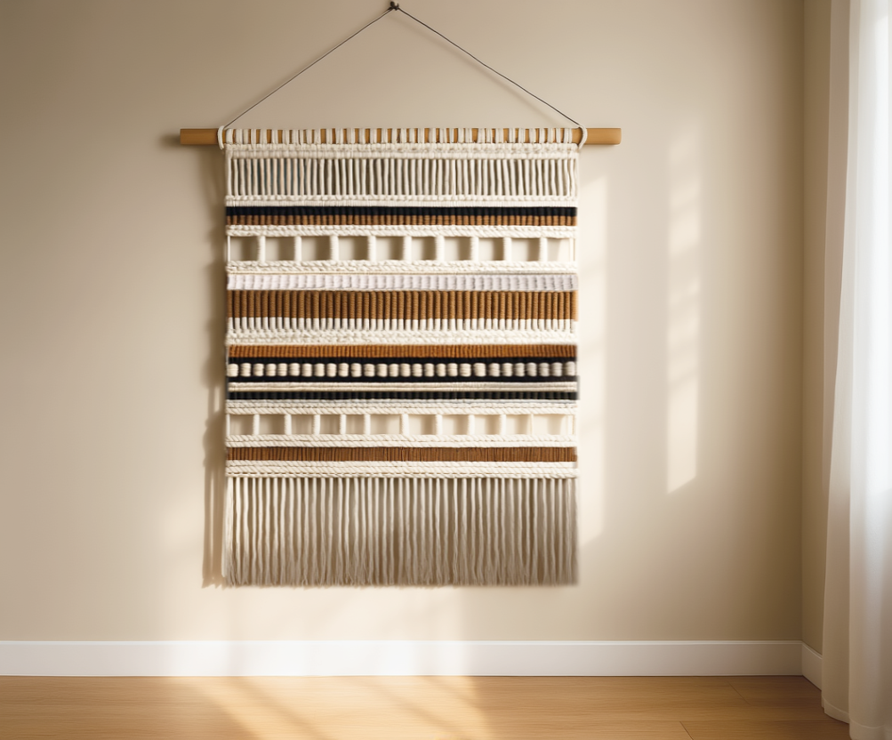 Fiber Artworks and Architectural Design Elements using only 100% natural materials. Combining skills from Macrame wall hangings, Rope Art, Carpentry and Ironmongery to create beautiful spaces