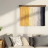 The striking hand-dyed yellow, gray, and black colors are beautifully balanced by the warmth of natural cotton and an earthy brown. This curated palette creates a visual harmony that is both strong and soothing. The interplay of textures, from the smooth oak dowel to the soft cotton fibers, adds an inviting, tactile element to the artwork.