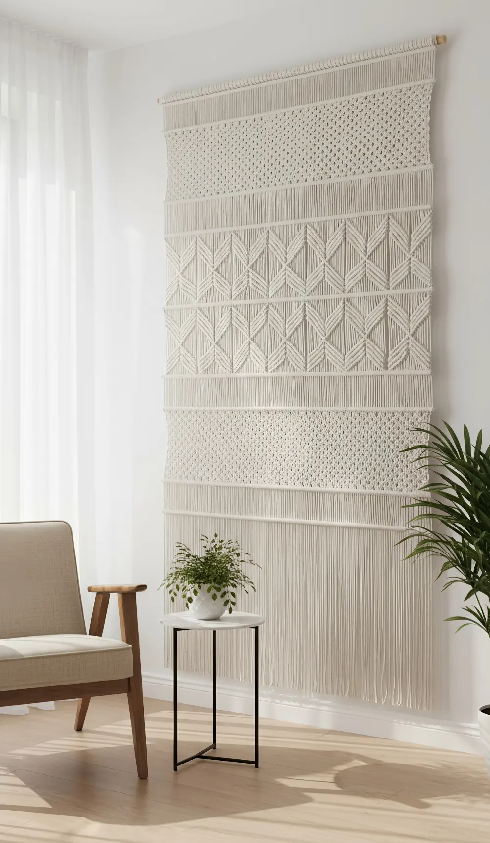 Invite the extraordinary into your home with the legendary Sephina Wall Hanging. This unique piece isn’t just art; it’s a dynamic experience, blending modern flair with traditional macrame craftsmanship to create a bold, contemporary statement in any space.
